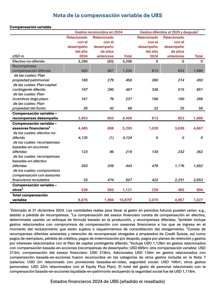 La nota de UBS que encontramos particularmente útil, y que va más allá de los requerimientos del IFRS 2, da detalles adicionales acerca de su compensación variable, incluyendo la SBC.