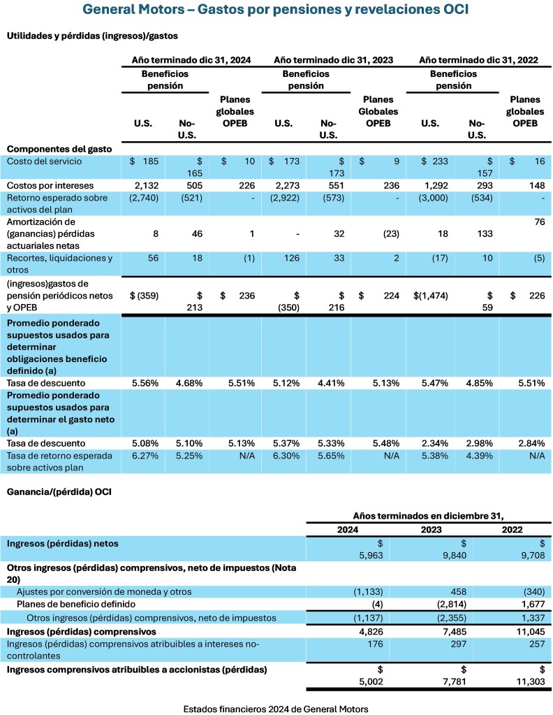 El total de las ganancias y pérdidas actuariales acumuladas en OCI eventualmente será reclasificado a utilidad y pérdida. Desafortunadamente GM no revela en OCI la ganancia o pérdida actuarial acumulada[8]