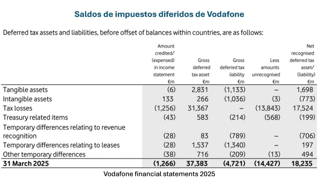 Nosotros discutimos este tema en nuestro artículo ‘Deferred tax fails to reflect economic value’ usando para ilustrar las acciones la compañía de telecomunicaciones del Reino Unido Vodafone. Los datos contenidos en el artículo son de hace unos pocos años, pero la posición actual es similar, con £17.5bn de activo tributario diferido reconocido en el balance general de 2025 y adicionales $13.8bn no-reconocidos.