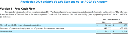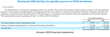 Métricas que no-son-PCGA del flujo de caja libre de Amazon