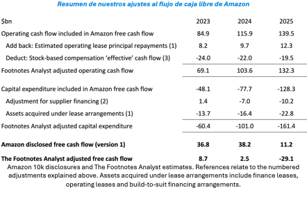 Cómo nuestros ajustes cambian el flujo de caja libre de Amazon