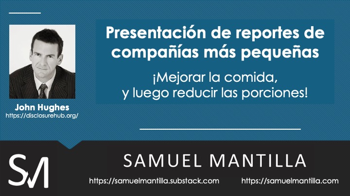 En fin, un resumen general podría ser: ¡Mejoremos la presentación de reportes financieros de las compañías más pequeñas, y luego conformémonos con menos información!